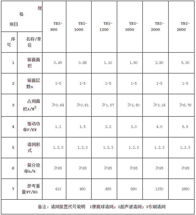 鹽業(yè)搖擺篩技術參數(shù):